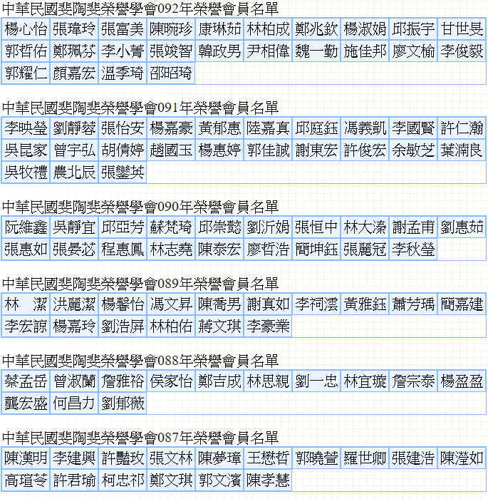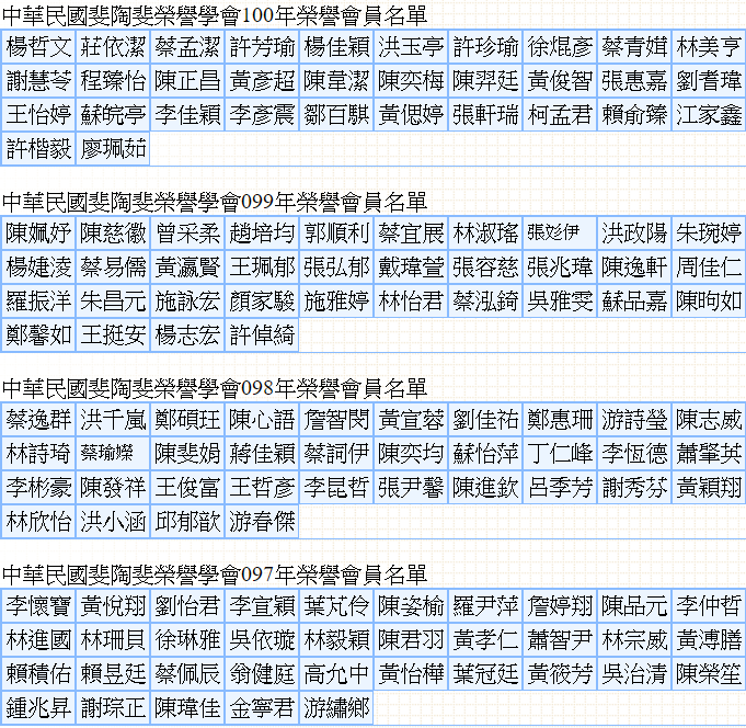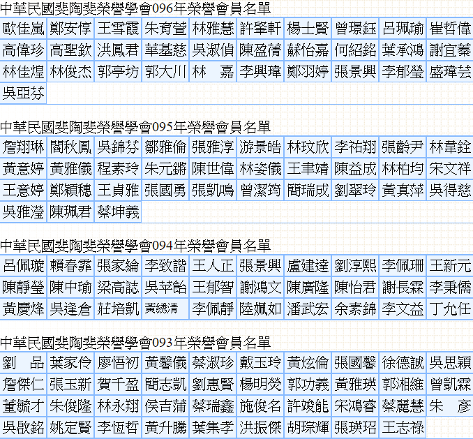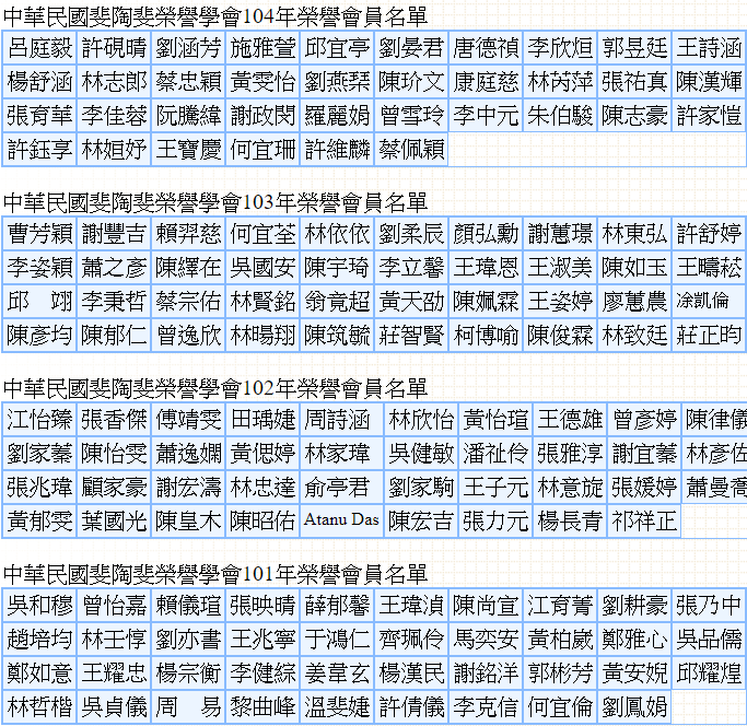 中華民國斐陶斐榮譽學會87-104年榮譽委員名單
